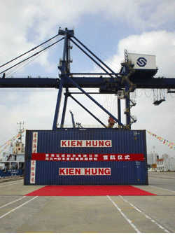 2002 年 10 月 24 日 於 汕 頭 國 際 集 裝 箱 碼 頭 舉 行 汕 頭 - 日 本 直 航 服 務 的 首 航 儀 式 。