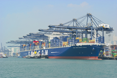 | 可載一萬六千零二十個標準箱的全球最大貨櫃船「達飛‧馬可波羅」(CMA CGM Marco Polo )昨日首航抵達香港國際貨櫃碼頭,充分展示該碼頭於處理超大型貨櫃船的超卓能力及效率。 |