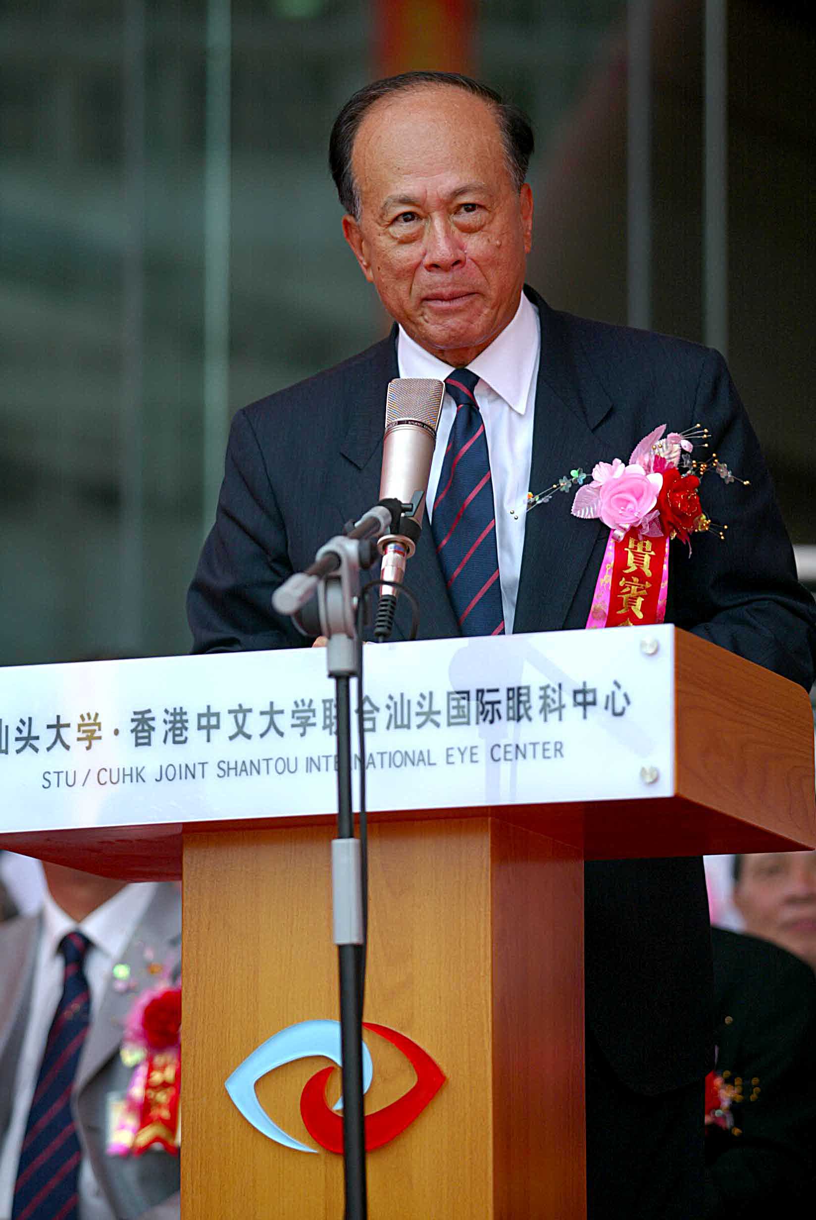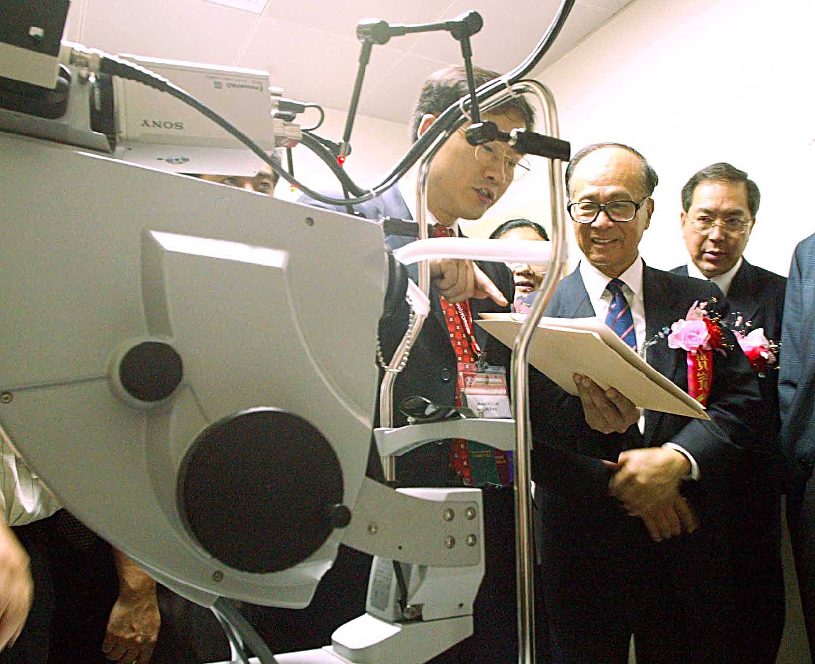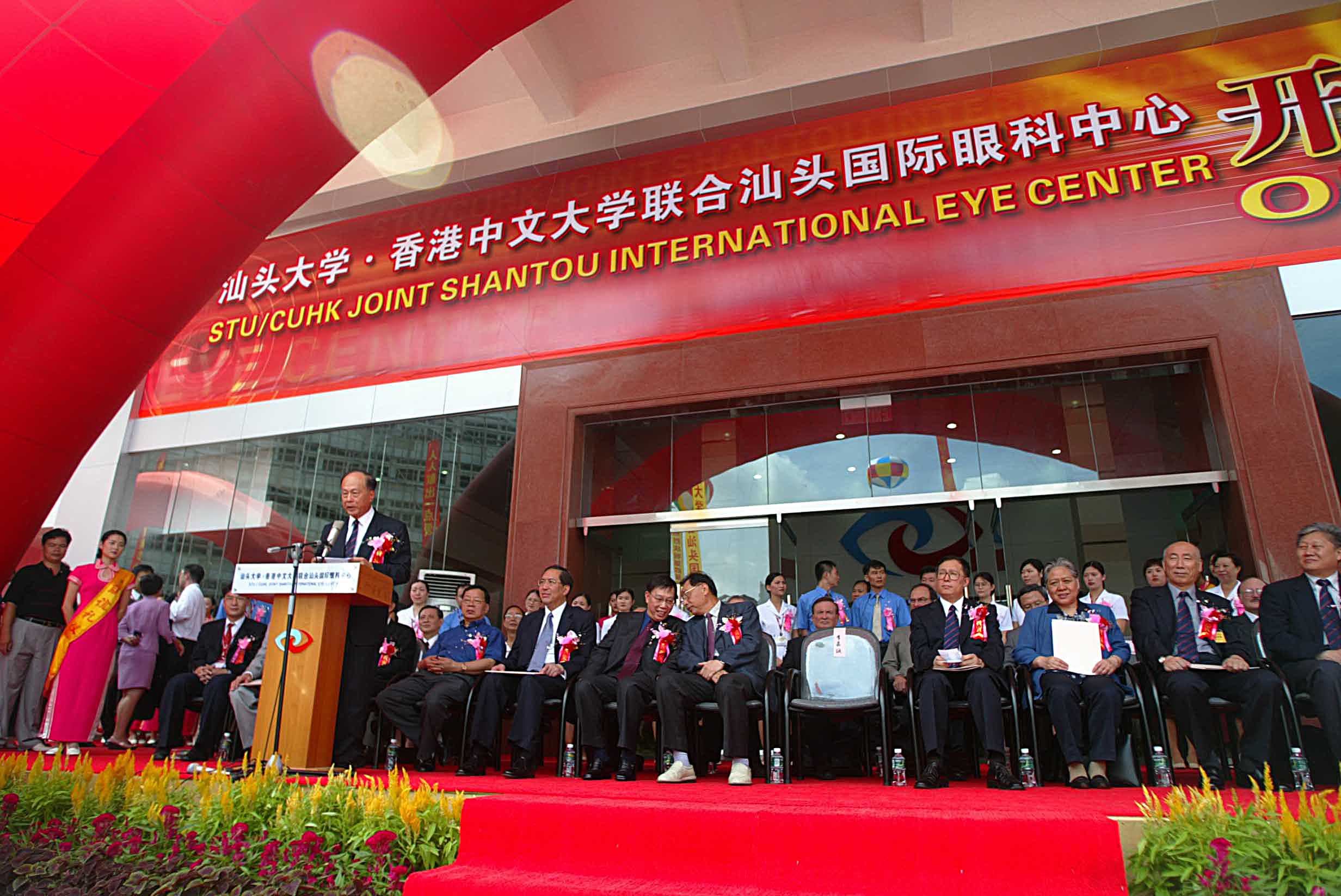 眼 科 中 心 開 幕 儀 式 由 李 嘉 誠 先 生 主 持 , 其 他 主 禮 嘉 賓 包 括 衛 生 部 副 部 長 黃 潔 夫 先 生 和 中 文 大 學 校 長 李 國 章 先 生 。 這 所 專 科 醫 院 由 汕 頭 大 學 與 香 港 中 文 大 學 聯 合 成 立 , 故 命 名 為 聯 合 汕 頭 國 際 眼 科 中 心 。